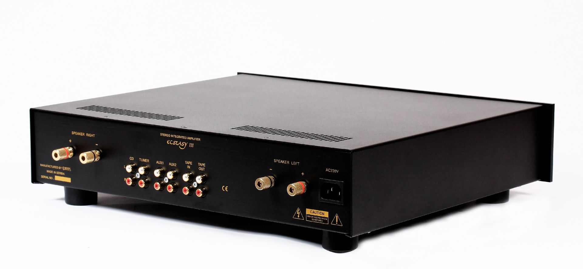 | "The Ecstasy III was expertly, beautifully and sophisticatedly voiced" - Srajan Ebaen, 6moons There is nothing else to add! | SPECIFICATIONS: Output power: 2x100W (8 ohm) / 2x150W (4 ohm) Inputs: 4 Frequency response: 1Hz to 200kHz Dimensions: 18.5 x 15 x 4.5 (inches) Weight: 31 lbs Remote control programming instructions. | Price: $2,490.00 6moons review: Ecstasy III | ||